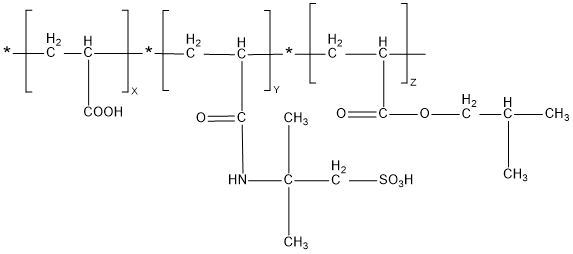 羧酸-磺酸-丙烯酸酯三元共聚物Carboxylic - Sulfonate - Acrylate Terpolymer 化學組成:AA-AMPS-HPA三元共聚物 化學結構式:
